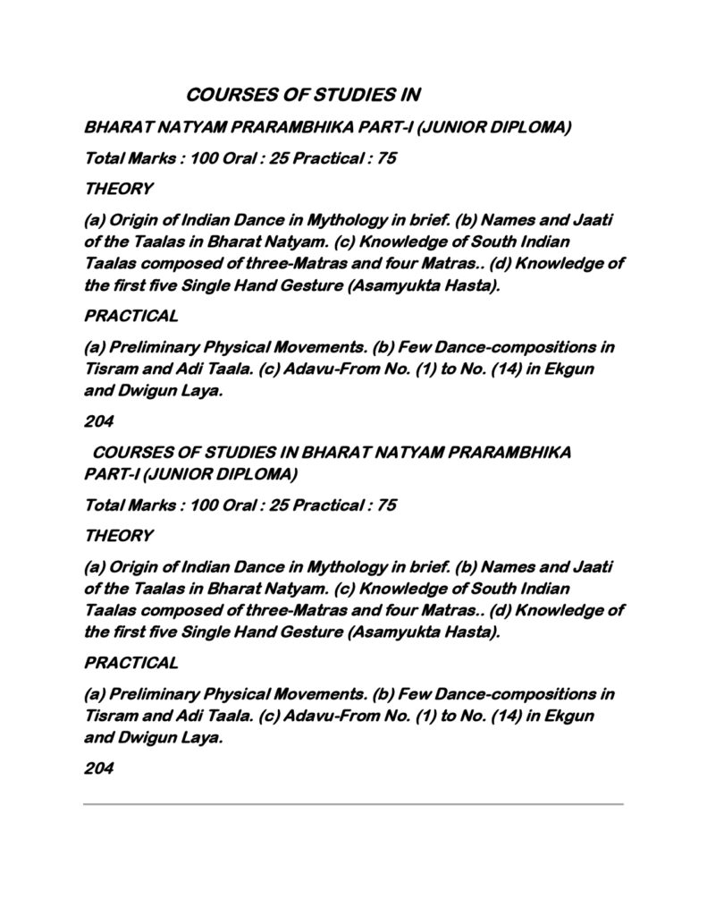 Courses of Studies in Bharatanatyam – Prarambhika Part-1