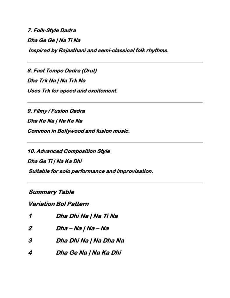 Dadra Taal may have only six beats, but its expressive possibilities are endless. By practicing these 10 amazing theka variations, tabla students can strengthen their rhythmic foundation while developing musical maturity. Whether you are accompanying a ghazal, performing a thumri, or practicing at home, Dadra Taal remains a timeless and essential rhythm in the world of tabla.