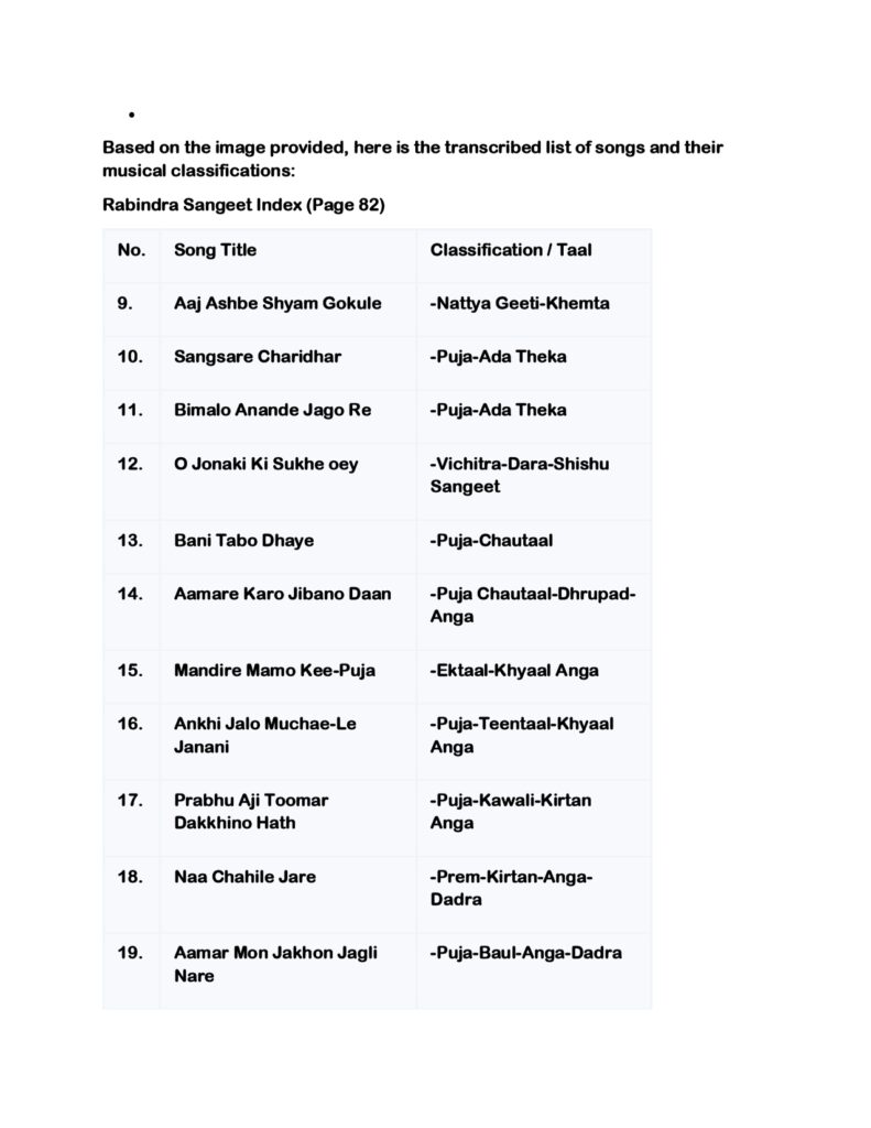 Rabindra Sangeet beautifully blends Hindustani classical ragas, folk traditions, Baul music, and even Western melodic influences. The uniqueness lies in its emotional range—devotion, love, patriotism, nature, sorrow, and joy—all expressed with refined simplicity.