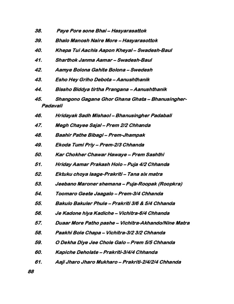 The Year 5 syllabus includes a wide-ranging list of Rabindra Sangeet compositions, covering: